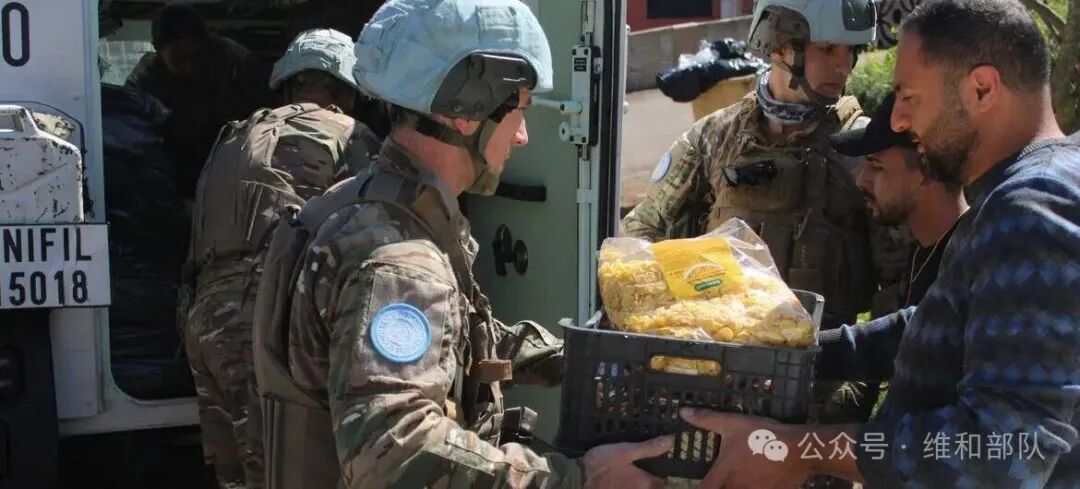 UNIFIL联合国维和部队在黎巴嫩南部向被迫离开家园的人们分发粮食