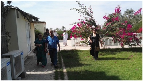 (三)在农业官员苏尔坦先生的带领下,驱车前去郊区考察阿曼农业和农场,阿曼是一个没有冬季的国度,随然是冬天,气温依旧是28度左右,中午还有些热。高速修的宽敞,车开得很快,除了一些刚修的别墅小区,就是黄色的山丘和沙地。
