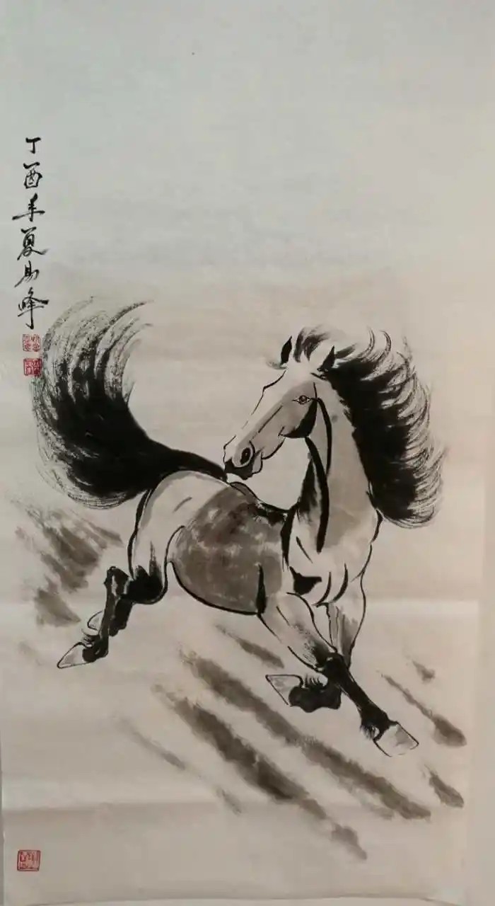 自幼受祖辈艺术大家董其昌的熏陶,喜爱书法绘画,多年来一直苦练基本功,曾经拜访过各个画派名家无数,行万里,研究大量古今中外画马名家的作品,提取其精华,来凝练自己对艺术的感悟和升华,作品被艺术界大佬和收藏家们认可并收藏,作品曾多次入选中国美协举办的重大画展并获得了很多的荣誉,央视媒体、报纸、网站、杂志、等刊物都有报道。传承了著名艺术大师徐悲鸿的手法,与徐悲鸿的画马的风格融合到一起,画出了自己的独特, 每幅马的作品中,运用饱酣奔放的墨色勾勒头、颈、胸、腿等大转折部位,并以干笔扫出鬃尾,使浓淡干湿的变化浑然天成。马腿的直线细劲有力,犹如钢刀,力透纸背,而腹部、臀部及鬃尾的弧线很有弹性,富于动感。整体上看,画面前大后小,透视感较强,前伸的双腿和马头有很强的冲击力,似乎要冲破画面,具有极高的收藏价值。