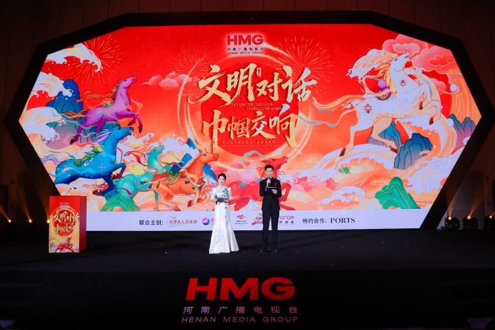 晚会的文艺演出部分精彩纷呈,成为各国文化交相辉映的舞台。河南民族乐团的二胡合奏《新赛马》以激昂旋律拉开表演序幕,寓意马年奔腾向前;