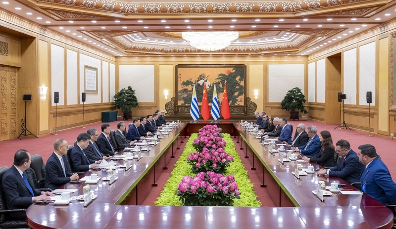 2026年2月3日上午,国家主席习近平在北京人民大会堂同来华进行国事访问的乌拉圭总统奥尔西举行会谈。